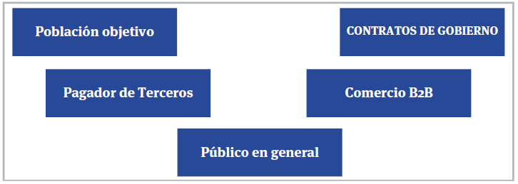 Existen dos modelos que gráficamente pueden ser muy similares, pero en su operación pueden tener diferencias relevantes, el modelo de pago por servicio y el de clientes de bajos ingresos. El primero, ofrece un producto o servicio a cambio de un pago, va dirigido al público en general y con ello se espera generar un impacto social positivo. Existen emprendimientos sociales que ofrecen sus productos incluso a segmentos de gama alta, un ejemplo es el caso de Patagonia, empresa social que ofrece productos textiles con una propuesta relacionada con la alta calidad, reciclaje, uso de productos naturales que buscan contaminar lo menos posible y generar una cultura de menor consumo por la moda; fomenta el intercambio y el reúso de prendas entre sus clientes, es decir, busca generar una transformación social desde los hábitos de consumo hacia economías alternativas o sustentables (Grassl, 2012). En el segundo modelo de negocio, se retoma la propuesta de Prahalad (2004) de la base de la pirámide, que se orienta a un segmento en condiciones de pobreza o ingresos sumamente limitados y que sólo a través de la propuesta del emprendimiento es posible que acceda a ciertos bienes y servicios. Su característica específica es que se dirige a un sector de la población que sobrevive con menos de 2 dólares por día (Grassl, 2012). Para ambos modelos se debe acentuar la misión o propósito social que tiene el emprendimiento y no confundirse con algunas estrategias que generan grandes multinacionales para acceder a mercados de bajos ingresos que cada vez son más atractivos por las economías de escala y que podrían verse como estrategias para sumar al modelo económico con fines lucrativos a aquellas personas que tradicionalmente han sido excluidas (Duke, 2013; Azevedo et al., 2015).