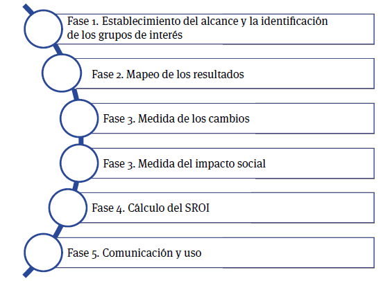 Para alcanzar el objetivo de esta investigación se realizó un análisis prospectivo siguiendo las etapas propuestas de sroi, mismas que se exhiben en la figura 1.