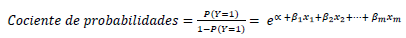 El cociente de probabilidades nos muestra la relación que existe entre la probabilidad de que suceda la variable dependiente y la probabilidad de que no suceda dado un vector de variables independientes.