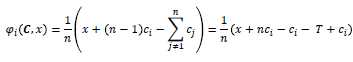 This function satisfies that Thus, if x is the Gini index, the function (2) gives the contribution of the i-th social class of inequality.