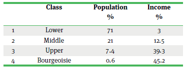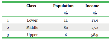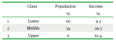 Thus, a major percentage of inequality is given by the lower class, followed by the bourgeoisie class, the upper, and finally the middle class.