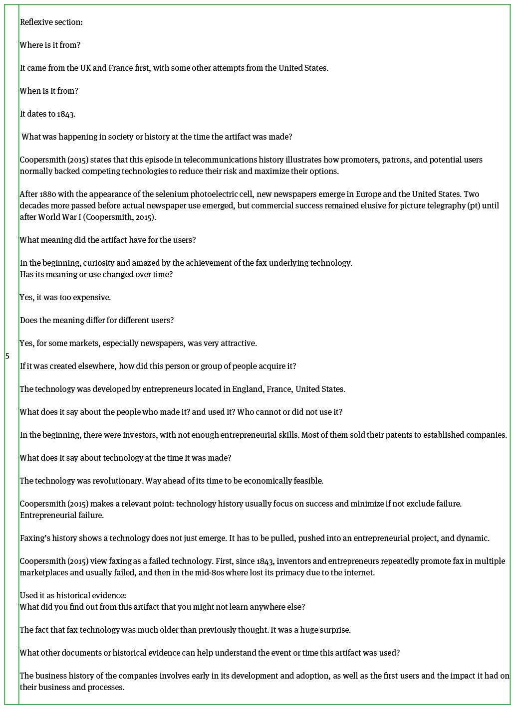 Artifacts are already a well-known document in the history of technology (Jenkins, 1987; Clarkson and O’Connor, 2006; Petrullo and Barich, 2020), recommended to be also as a potentially viable approach for business historians (Hansen, 2012). They are beginning to win attention in the entrepreneurship literature seeing opportunities as artifacts (Berglund, Bousfiha, and Mansoori, 2020), since exploring the mechanisms between entrepreneurial processes and historical change are central (Wadhwani and Lubinski, 2017).