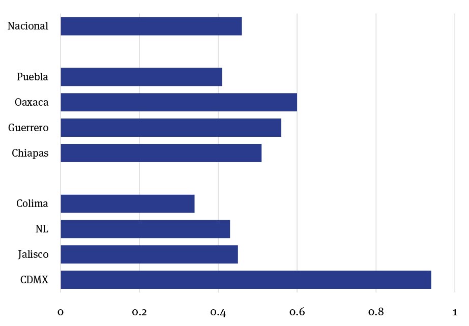 Además de alcanzar una tasa nacional similar al promedio de los países de la ocde, un reto complementario es aumentar la cantidad de profesionales de la medicina en los estados con mayor rezago, en donde se requiere subsanar la desigualdad inicial y alcanzar la media nacional, que es sin duda una dificultad incrementada, reiterándose así otro de los frentes ya identificados para actuar (Gobierno de México, 2018). La mayor concentración de los servicios de salud y del personal médico en las ciudades y en algunos estados del país dificulta lograr la universalización de los servicios de salud en México. El problema no solo es la cantidad de egresados sino la adecuada distribución de personal para atender las necesidades de los sectores menos favorecidos. La formación de profesionales médicos debe adecuarse a los cambios del contexto nacional, es decir, los cambios políticos, la economía, la situación actual del sistema de salud, así como al contexto sociodemográfico y epidemiológico (Fajardo et al., 2019).