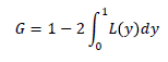 The Gini index is a well know income distribution measure and can be defined as the shaded part of the Lorenz curve. A simple and general formula can be constructed if we define the Lorenz curve as, then the Gini index is simply: