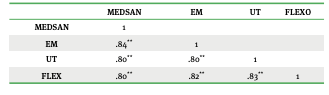 Adicionalmente, se realizó el análisis de correlación de Pearson con los factores resultantes de la escala para comprobar la fuerza o grado de asociación entre variables tomando en consideración la proximidad al +1 y el índice de significancia de .05 a .01 (Restrepo y González, 2007).