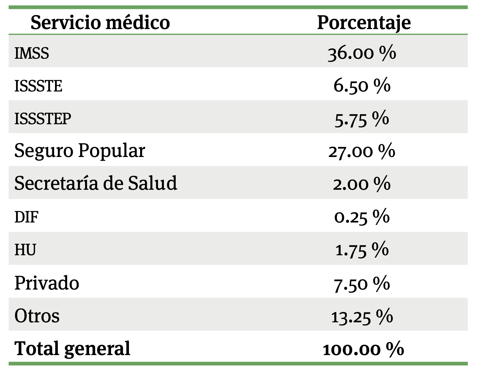 Del total de la población estudiada, 36 % son derechohabientes del imss, 6.50 % derechohabientes del issste, 5.75 % derechohabientes del issstep, 27 % cuentan con Seguro Popular, 2 % acuden a la Secretaría de Salud, 0.25 % mencionó acudir al dif, 1.75 % son derechohabientes del hu, 7.50 % acudir a servicios privados y 13.25 % a otros servicios. Podemos observar que el mayor porcentaje de pacientes que se atienden en las ceds tienen acceso a servicios médicos públicos y/o privados, de los resultados y el diagnóstico situacional de nuestro sistema de salud podemos inferir que esto se debe a varios factores, el primero de ellos es que en los servicios públicos solo se otorgan tratamientos de primer nivel de atención; segundo, la inversión de tiempo para recibir el servicio es mayor; tercero, los pacientes que no tienen seguridad social realizan actividades de economía informal; cuarto, en caso de requerir tratamientos especializados, correspondientes al segundo nivel de atención, todos los pacientes tienen que pagar su rehabilitación estomatológica de forma privada, siendo estos muy caros, a diferencia de que en las ceds de la buap pueden acceder a ellos con cuotas de recuperación y bajo protocolos clínicos de calidad de acuerdo a la normatividad establecida. La baja afluencia de derechohabientes de hu se debe a que ellos cuentan también con este servicio en el hospital, clínicas periféricas y en las clínicas de posgrado de la facultad (tabla 8).