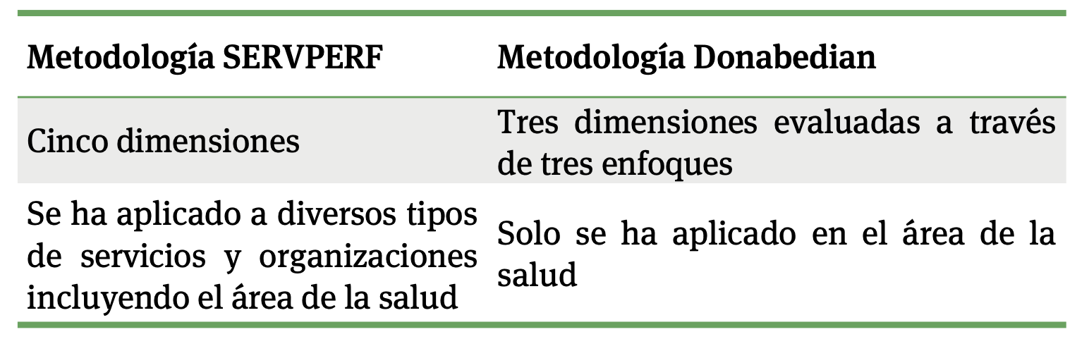 Análisis comparativo de la metodología SERVPERF y la metodología Donabedian