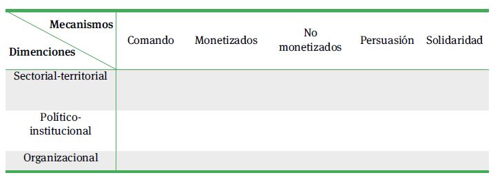 La gobernanza multinivel utilizada como herramienta analítica en esta investigación está referida a la identificación, clasificación y explicación de los mecanismos de gobernanza, entendidos como reglas de decisión que influyeron en el proceso organizativo de implementación de la ecati, a través del proyecto Fomix para la creación del consorcio cittaa. Desde una perspectiva evolutiva, este marco de análisis busca explicar el proceso decisorio en las dimensiones sectorial-territorial, político-institucional y organizacional, considerando la combinación de mecanismos de gobernanza formales e informales de tipo comando, intercambios monetizados y no monetizados, de persuasión y solidaridad.