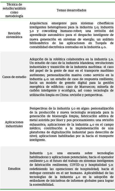 Por otra parte, Muller (2020) identificó seis tipos de tecnologías disruptivas relacionadas con la industria 5.0: