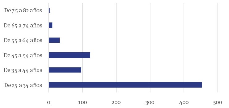 Se encuestó a 413 mujeres, 298 hombres y a 8 personas que seleccionaron “otro” género. Las edades de los encuestados van de 25 a 82 años. La frecuencia de las edades por grupos de cada 10 años y el nivel de ingresos familiares, son presentados en las figuras 1 y 2 respectivamente.