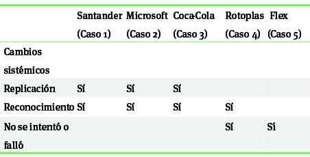 Los casos de Santander y Microsoft indican que hay una estrategia más clara de escalamiento, imbricación e institucionalización en comparación con los casos de Coca-Cola, Rotoplas y Flex. Por ello, estos últimos caen dentro del rubro de la rsc y los primeros pueden caracterizarse como isc. Destaca, además, que en las entrevistas se hizo evidente que la diferencia entre responsabilidad e innovación social no queda clara entre algunos agentes de las emn; hay quienes consideran que su iniciativa es de isc o rsc y viceversa.
