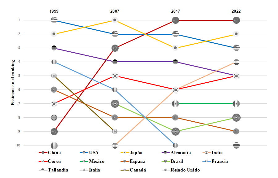 En igual sentido, en el unctadHandbook of Statistics 2022 de la Conferencia de las Naciones Unidas sobre Comercio y Desarrollo (2022), México forma parte del segundo grupo de naciones con mayor apertura externa. México suma un puntaje de 39, versus – a modo de comparación—un puntaje de 10 de Estados Unidos y de 25 de Canadá4