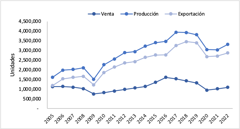 Asociación Mexicana de la Industria Automotriz, A.C. [AMIA] (2023a). Producción de vehículos ligeros. México: AMIA. Recuperado de https://www.amia.com.mx/vehiculosligeros/