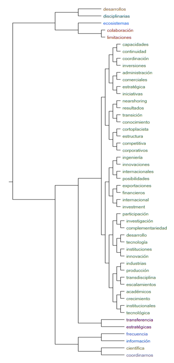 Anteriormente se analizó información estadística con relación al objeto de estudio, la iam; en este apartado, bajo un paradigma hermenéutico o interpretativo, se presentan los resultados del trabajo de campo, producto principalmente de entrevistas semiestructuradas, a través de las cuales se obtuvieron observaciones de primer y segundo orden19,20 sobre el problema de estudio, que muestran que en materia de innovación y escalamientos en industrias como la automotriz, se presentan limitaciones en los resultados alcanzados mayormente por falta de complementariedad institucional entre las agendas de las instituciones privadas, de gobierno y académicas.