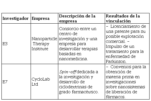 La vinculación de la academia con la industria es fundamental para que la investigación científica se materialice en productos tangibles para la sociedad. A este respecto, la mayoría de los investigadores entrevistados dijeron tener nula o muy poca vinculación con empresas. Las razones de esta desvinculación las explica así una de las investigadoras entrevistadas: