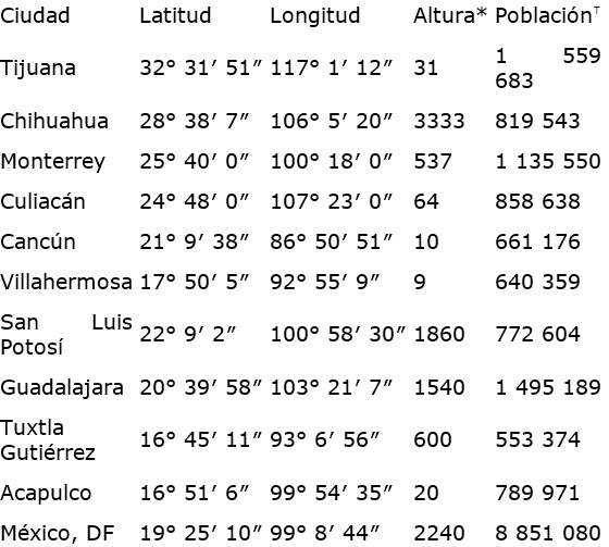 La dosis de radiación UV eritematógena fue obtenida con el sistema gestor Giovanni, diseñado para el estudio de datos e información de ciencias de la tierra. Esta herramienta fue desarrollada y es mantenida por el Centro Espacial de Vuelos Goddard de la NASA (Administración Nacional de la Aeronáutica y del Espacio, Greenbelt, MD, E.U.A).19 Los parámetros se originan desde el sistema satelital Aura, los cuales son válidos para su uso científico.19,20 Los datos utilizados correspondieron a la ciudad de San Luis Potosí y otras 10 localidades representativas del país, cuyas características geográficas se describen en el cuadro I.