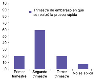 Estas detecciones predominan durante el segundo trimestre de la gestación, por lo que se deben tomar medidas para realizar la prueba rápida desde el primer contacto con la mujer embarazada y de preferencia durante el primer trimestre del embarazo.