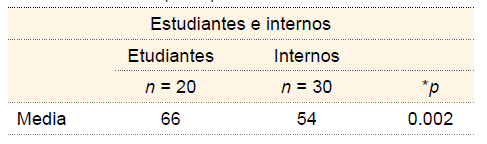 - 20 estudiantes de medicina de tercer año y 30 internos de pregrado