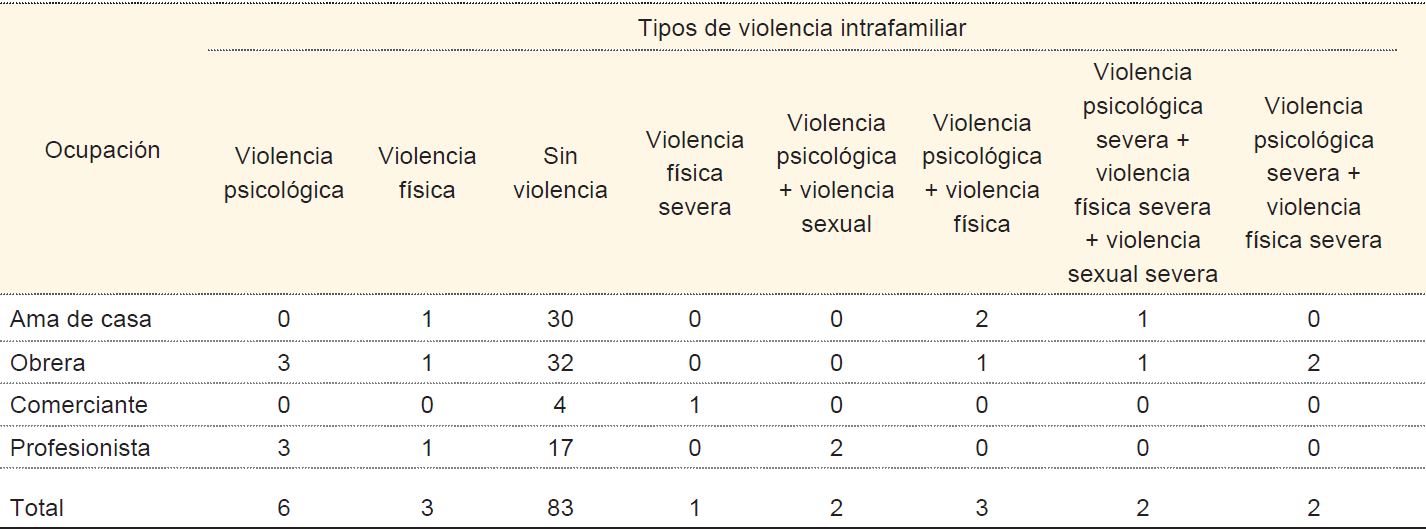 En controversia con lo publicado por Cepeda et al, donde la escolaridad que predominó entre las mujeres violentadas fue la secundaria,13 en este trabajo el mayor porcentaje con violencia lo obtuvieron las embarazadas que tenían como nivel de estudios licenciatura en un 26.3 %. Estos autores también afirman en su trabajo que las embarazadas dedicadas al hogar fueron las que presentaron el mayor porcentaje de violencia (71.2 %), factor de riesgo que en nuestro trabajo estadísticamente es contrario, ya que el 78.95 % tenía un trabajo entre obreras, comerciantes y profesionistas.