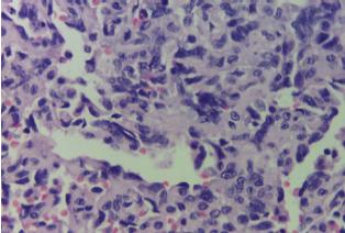 El reporte del estudio histopatológico de la pieza quirúrgica fue hemangioendotelioma epitelioide atípico, con las siguientes características: factor VII positivo; CD 31 positivo; CD 34 positivo; proteína p53: 15 % ++ a +++; Ki-67: 30 % (figura 3).
