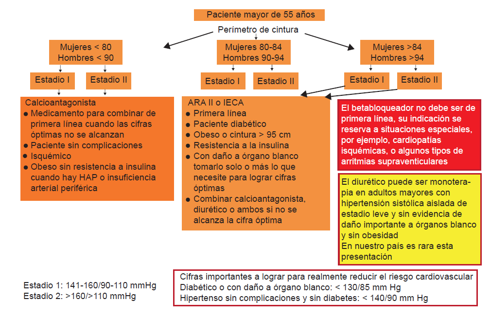 No obstante, como se detalla en el cuadro XII, el hipertenso con evidencia de daño a órganos blanco debe siempre iniciar con un bloqueador del sistema renina-angiotensina (ARA II o IECA), independientemente de su peso.