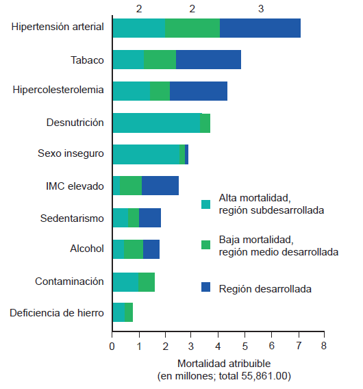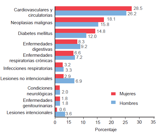 En el Instituto Mexicano del Seguro Social (IMSS) se reportaron en 2012 los resultados de la carga por enfermedad en 2010; según estos, el 27 % del total de mortalidad fue secundario a enfermedades cardiovasculares (figura 2).