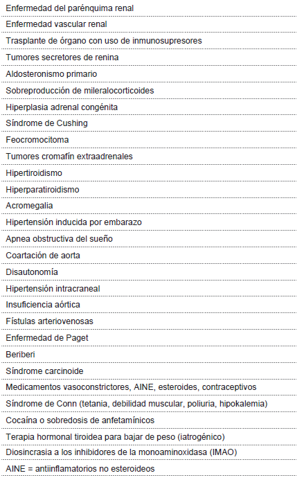 En sujetos que súbitamente cambian su patrón de hipertensión de nivel I o II hacia una hipertensión de muy difícil control, la posibilidad de un factor endocrino, metabólico o bien estructural, como estenosis de arterias renales por aterosclerosis, siempre debe tenerse en mente. Por lo tanto, más que continuar agregando antihipertensivos se debe descartar un componente agregado.