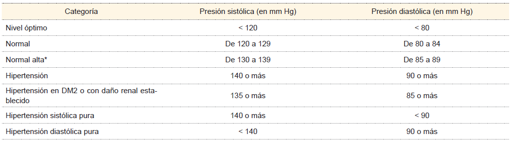 El nivel de presión arterial es un importante parámetro para el diagnóstico y el abordaje terapéutico, siempre y cuando se tome en cuenta el contexto del enfermo. En el cuadro I se demarca la clasificación según el nivel de presión arterial en mm Hg.