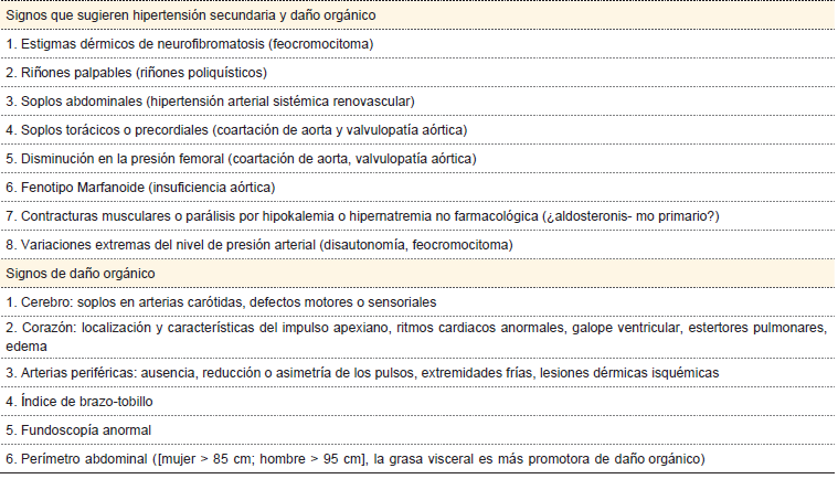 Deben recabarse los antecedentes familiares con especial atención a HTAS y enfermedades asociadas como diabetes, dislipidemias, enfermedad coronaria prematura, enfermedad vascular cerebral y enfermedad renal. La historia clínica debe incluir lo siguiente: