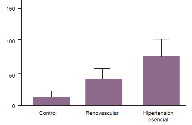 En esta última los niveles de renina son bajos o no medibles por laboratorio y pueden estar asociados con hipokalemia relativa. Los niveles altos se presentan en pacientes que tienen estenosis de la arteria renal; sin embargo, se debe tomar en cuenta que el 15 % de los niños con arteriografía evidente de estenosis de dicha arteria tienen niveles normales de renina. 28, 29
