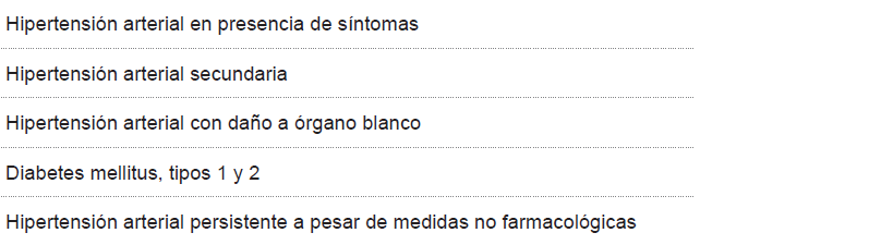 En el cuadro VII se enumeran algunas indicaciones para el uso de drogas antihipertensivas en el niño. Estas indicaciones incluyen la presencia de síntomas secundarios, hipertensión secundaria, daño a órgano blanco establecido y falla en el control de la presión con medidas no farmacológicas.