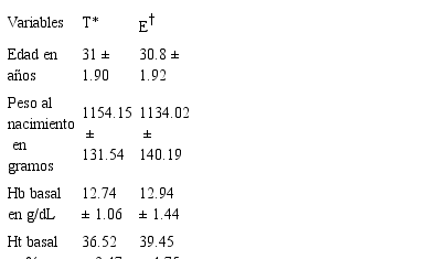 Los datos sobre edad, peso al nacimiento, Hb y Ht basales se presentan en el cuadro I.