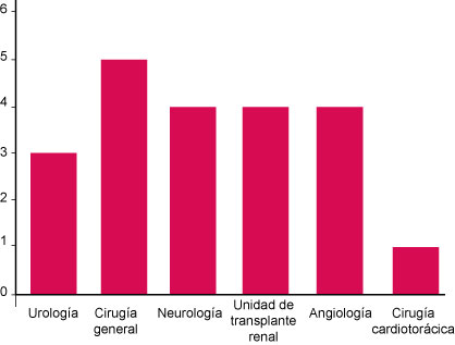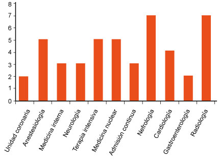 Se encuestaron 67 médicos especialistas (42 %), relacionados con el trasplante y la donación de órganos y tejidos, que aceptaron participar y responder la encuesta, de un total de 158 médicos adscritos que laboran en el Hospital de Especialidades “Antonio Fraga Mouret” del Centro Médico Nacional La Raza. La mediana de edad fue de 42 años, con una proporción mayor del sexo masculino (52.2 %, percentiles 25 y 75: 37-50).