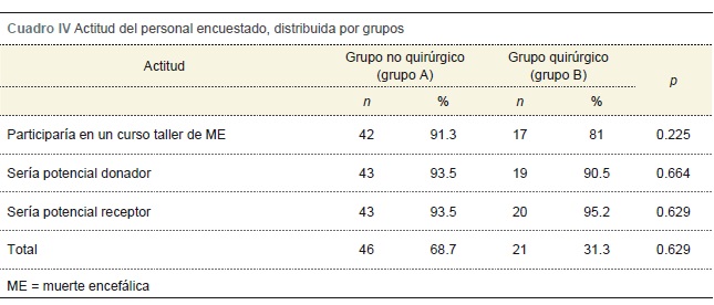 El objetivo del estudio fue conocer la actitud y el nivel de conocimientos del personal médico relacionado con el trasplante y la donación de órganos y tejidos, en torno al concepto de muerte encefálica.