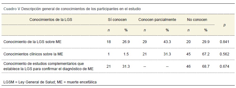 Constituye una prioridad de la salud pública la procuración de órganos para trasplante. En esta situación, la capacitación de los profesionales de la salud en el diagnóstico de la muerte encefálica permite la detección oportuna de potenciales donantes.18,19,20 Los conocimientos de los profesionales de la salud varían según su formación académica, experiencias personales y convicciones culturales.21,22,23