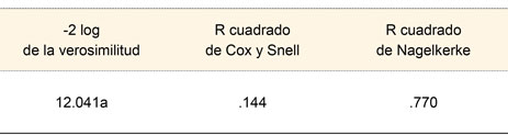 Mediante análisis de regresión logística se establecieron los factores que predicen la presencia de hipoacusia en neonatos, este análisis se reporta en el estudio de Palacios18 en su modelo de Nagelkerke presento un porcentaje de predicción de 91%, estableciendo una fuerte predicción para la presencia de hipoacusia en neonatos con factores de riesgo, en nuestra investigación la predicción del modelo de Nagelkerke se obtuvo un porcentaje de 77% (cuadro VI).