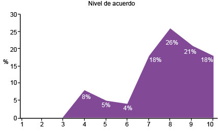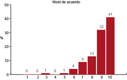 Una vez estipulado el “acuerdo” entre los votantes se determinó el “grado de acuerdo”, el cual se estadificó del 1 al 10 en donde 1 significa “muy poco acuerdo” y 10 “completamente de acuerdo” para cada tópico discutido.