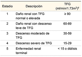 Para definir el daño renal crónico debe transcurrir un tiempo ≥ 3 meses y debe presentarse una o más de las siguientes características:9