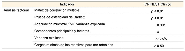 El OPINEST Clínico tiende a la unidimensionalidad; sin embargo, con fines de realimentación a los docentes, se conservan cuatro factores que favorecen el aprendizaje significativo para la solución de problemas de salud basada en la evidencia y el profesionalismo: