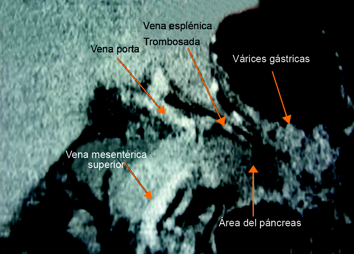 La mayoría de los casos de hemorragia del tubo digestivo superior corresponde a hipertensión portal de origen cirrótico, úlceras gastroduodenales y gastritis erosiva. Menos común es el síndrome clínico de hipertensión portal izquierda (HPI) o segmentaria que es secundaria a trombosis de la vena esplénica (TVE). La HPI por TVE se caracteriza por: 1) várices gástricas aisladas,2) esplenomegalia y3) función hepática normal.1 El primer caso de lo que llegaría a ser conocido más tarde como HPI fue descrito en 1952 en un paciente con carcinoma de la cola del páncreas, manifestado por melena, varices gástricas e hiperesplenismo.2 Dos años más tarde, se informó otro caso de sangrado gastrointestinal debido a TVE por carcinoma de páncreas.3 El carcinoma de páncreas, la pancreatitis y el pseudoquiste pancreático son las causas más frecuentes de TVE e HPI, aunque otras causas incluyen tumores invasivos, tuberculosis del páncreas e hipercoagulabilidad.4,5