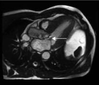 Paciente masculino de 54 años, ex fumador, hipertenso tratado con 16 mg al día de candesartán y posible portador de síndrome de Wolff-Parkinson-White (WPW). Mientras realizaba actividad física, el paciente presentó un dolor precordial con inmediato episodio de síncope, recuperado ad integrum, por lo que fue trasladado al hospital en donde se observó en el electrocardiograma un bloqueo completo de rama izquierda. El examen físico mostró un paciente hemodinámicamente estable con una presión arterial de 150/100 y una frecuencia cardiaca de 60 lpm. Se auscultó un soplo mesotelesistólico en foco aórtico con segundo ruido conservado. Se realizó un ecocardiograma Doppler que mostró diámetros intracavitarios normales con hipertrofia septal y función sistólica del ventrículo izquierdo conservada; además, una imagen a nivel subaórtico sugirió la presencia de membrana subaórtica (figura 1). Ante la posibilidad de un evento isquémico, dado el dolor precordial con bloqueo de rama izquierda y el episodio de síncope, se decidió realizar una angiografía coronaria en la que se observó una lesión del 80% en la arteria circunfleja a la que se le realizó una angioplastia con el posterior implante de un stent liberador de drogas. Debido a lo observado en el ecocardiograma Doppler, se decidió realizar un ecocardiograma transesofágico 3D en el que se observó hipertrofia asimétrica del septum, una válvula aórtica tricúspide y a 18 mm por debajo del anillo aórtico una membrana de 5 a 6 mm que generaba un gradiente en reposo de 24 mm Hg. No se observó movimiento anterior sistólico de la válvula mitral ni obstrucción dinámica subaórtica durante la maniobra de Valsalva (figura 2). Posteriormente, se decidió realizar una resonancia magnética nuclear cardiaca con realce tardío que mostró hipertrofia asimétrica del ventrículo izquierdo a predominio de los segmentos basales y un engrosamiento focal de 6 mm por 5 mm desde el septum interventricular que protruía hacia el tracto de salida del ventrículo izquierdo y confirmó el diagnóstico de membrana subaórtica (figura 3). Durante la internación se realizó un monitoreo Holter de 48 horas en el que se pudo evidenciar en forma paroxística el patrón de WPW.