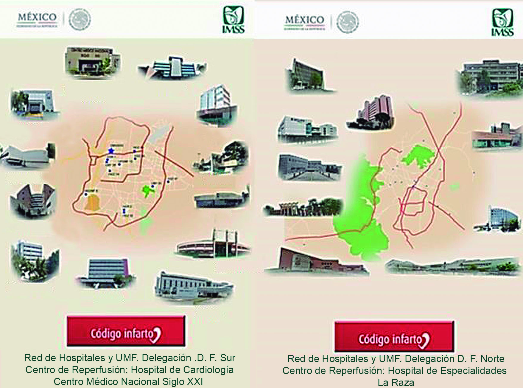 Abstract: Code infarction is a timely strategy for the treatment of acute myocardial infarction (AMI) with elevation of the ST segment. This strategy has shown an increase in survival and quality of life of patients suffering from this event around the world. The processes of management and disposition aimed at the reduction of time for effective and timely reperfusion are undoubtedly a continuous challenge. In the Instituto Mexicano del Seguro Social (IMSS) the mortality due to AMI has been reduced more than 50%, which is a historical situation that deserves much attention. Nonetheless, the continuous improvement and a wider coverage of this strategy in our country are the key factors that will outline a change in the natural history of the leading cause of death in Mexico. This review focuses on current strategies for the management of patients with acute myocardial infarction. Introducción