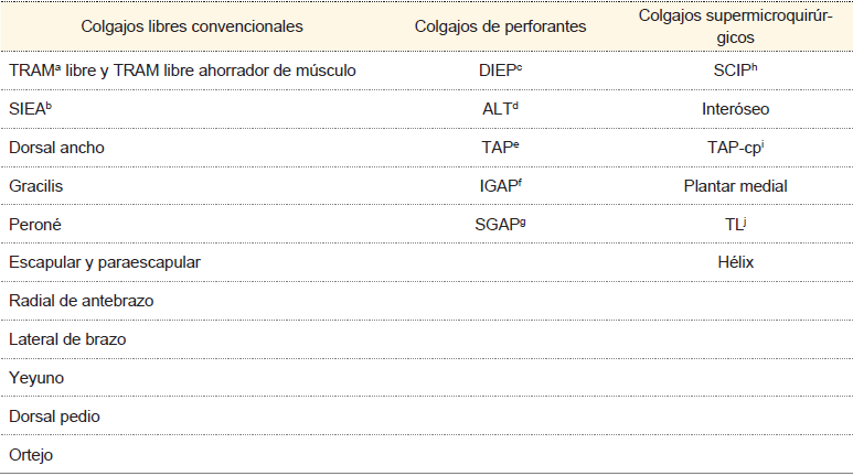 Un paso crítico de cualquier procedimiento quirúrgico es la evaluación y educación de los pacientes. Durante las consultas previas al procedimiento se explica a los pacientes y familiares la naturaleza y los motivos para llevar a cabo una cirugía de este tipo. Se discute a detalle el tipo de colgajo a realizar (dermograso, fasciocutáneo, musculocutáneo, muscular, óseo etc.), el sitio anatómico del cual va a ser tomado (cuadro I), las características del mismo, así como las secuelas del sitio donador (cicatrices, déficits funcionales, alteraciones del contorno, etc.). Es importante hacer hincapié en que se trata de una cirugía que requiere de una estancia intrahospitalaria de, por lo menos, una semana y que tiene un periodo de recuperación prolongado. Se mencionan las principales complicaciones tanto sistémicas como locales del procedimiento, haciendo especial énfasis en la posibilidad de requerir un segundo colgajo en caso de necrosis total del primer colgajo. Como rutina, solicitamos valoración preoperatoria a todos los pacientes para determinar el riesgo quirúrgico. Asimismo, en esta etapa se revisan los estudios de gabinete en caso de así requerirlo (angiografía, angiotomografía, resonancia magnética, linfografía, etc.).