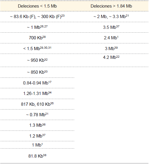 El estudio de las deleciones atípicas mediante análisis genómicos aportará información relevante para lograr una correlación genotipo-fenotipo más precisa. Por lo tanto, se recomienda la búsqueda intencionada de tales deleciones en pacientes sin deleción por FISH incluso en aquellos pacientes con un fenotipo más grave y diagnosticados por FISH. Es importante el uso de técnicas moleculares con mayor sensibilidad y especificidad que la FISH para la caracterización de las deleciones.
