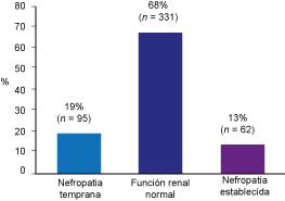 *p < 0.05 vs. función renal normal †p < 0.05 vs. nefropatía temprana.