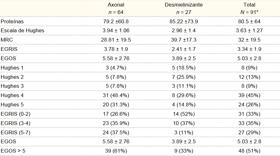 Conclusions: In this study the demographic and clinical features are similar to other previous reports, we documented a greater proportion of axonal subtype, which are related with important disability and worse prognosis.