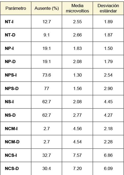 En cuanto a la afección observada de los nervios en esta investigación, vale la pena comentar dos antecedentes. Hsu et al. remarcan la importancia de los nervios peroneo sensorial y sural para el diagnóstico de polineuropatía diabética y la posibilidad de su uso como criterio simplificado en estudios de campo.21 Aaron et al. destacan la utilidad de las neuroconducciones sensoriales para confirmar el diagnóstico de diabetes mellitus en centros de atención primaria.22