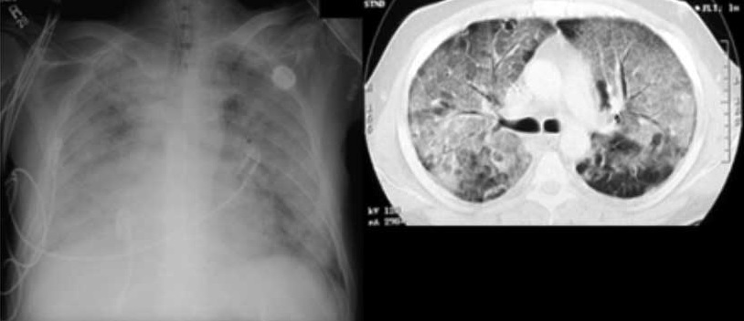 A la izquierda, placa simple de tórax. A la derecha tomografía axial computarizada.