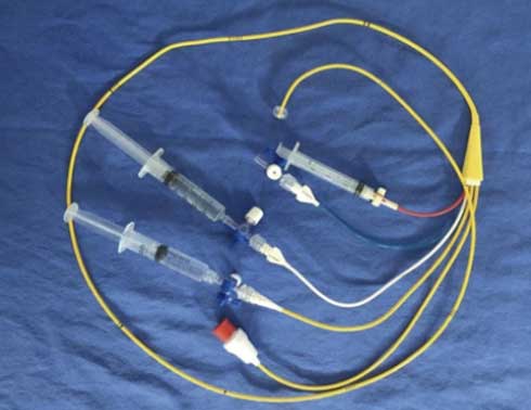 Es necesario hacer la diferencia entre el SDR pulmonar (primario) del extrapulmonar (secundario), ya que en el primero el manejo ventilatorio es de mayor dificultad, por lo que el pronóstico es reservado y la extubación exitosa también se dificulta.4 En el pasado se utilizaba el catéter de flotación pulmonar de Swan-Ganz para el diagnóstico y el manejo oportuno de líquidos (figura 2), pero con el advenimiento del ecocardiograma y el ultrasonido en las unidades de terapia intensiva, este aditamento ha tenido un decremento de su uso.