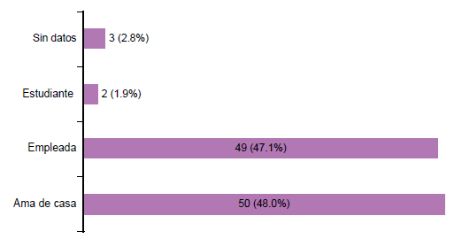 Las ocupaciones se observaron en su mayoría de amas de casa y empleadas, como se muestra en la figura 6.
